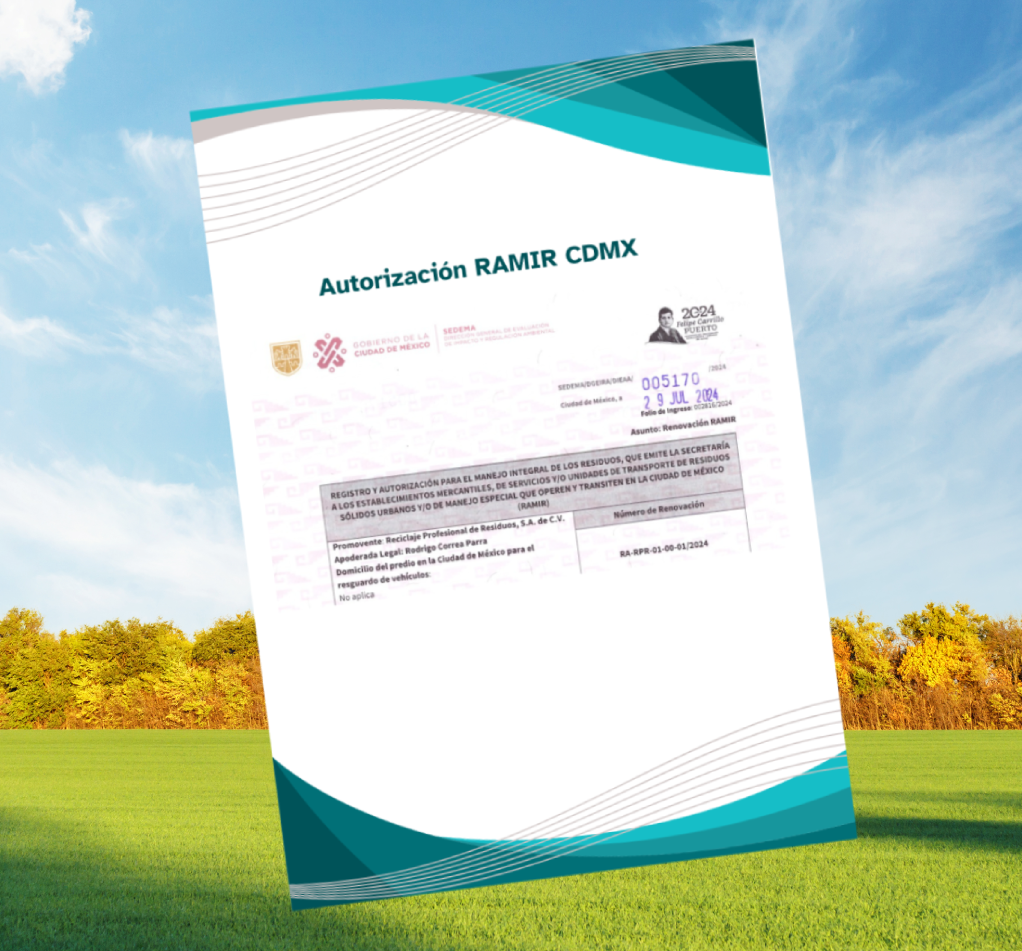Contamos con las autorizaciones ambientales vigentes en materia de recolección y reciclaje industrial para la CDMX y Edo. de México.